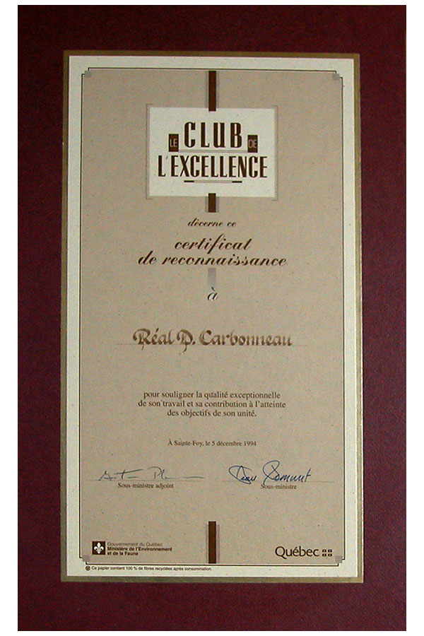 1994 Prix reconnaissance de l’Excellence du ministère de l’Environnement et de la Faune